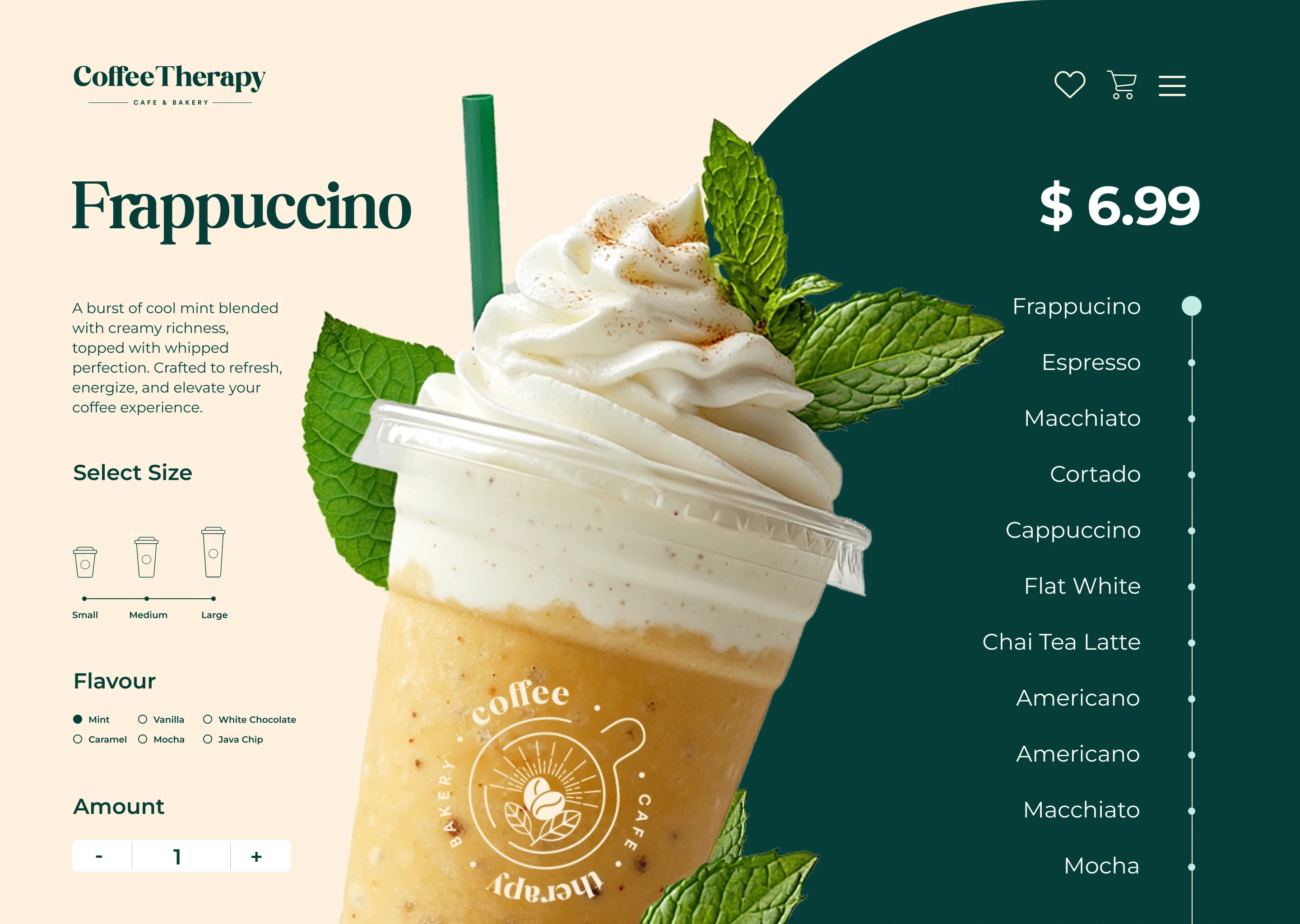 Starting with the name and brand ethos, I built a system anchored in the idea of coffee as a gentle ritual - a moment of therapy in the everyday. The design language draws from earthy palettes, botanical textures, and soft geometric forms to evoke a space that feels nostalgic yet modern.
