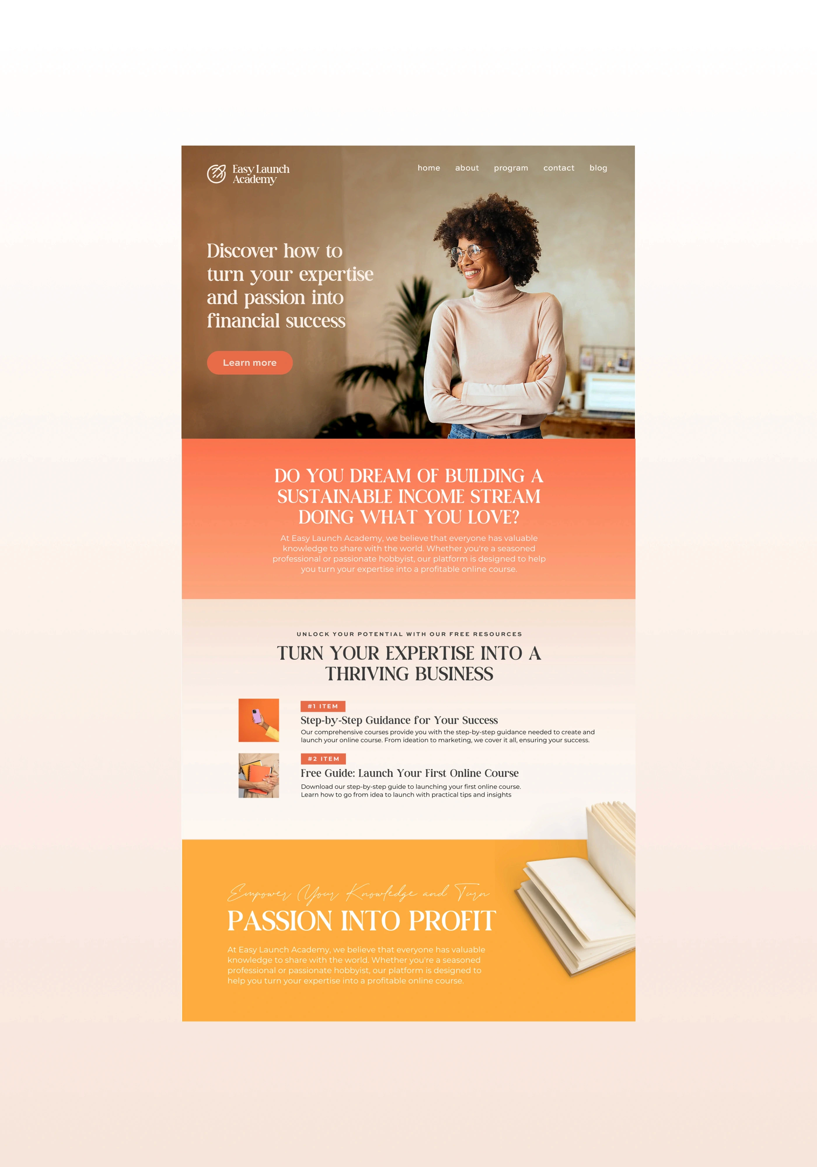 The personal growth and course space is crowded - and often lacks visual distinction. Easy Launch Academy needed a brand that could stand out in a sea of sameness, while still feeling trustworthy, encouraging, and conversion-focused.