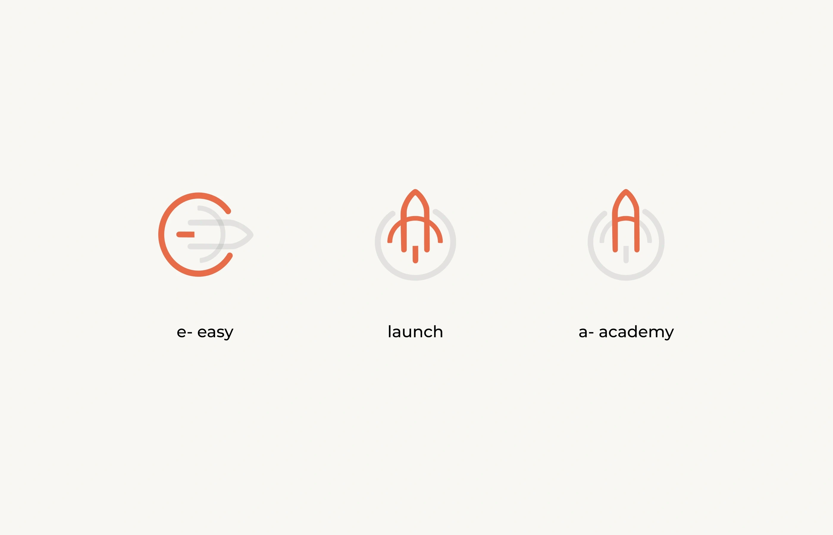 For Easy Launch Academy, I designed a monoline rocket mark - a symbol of momentum and focused ambition. Combined with a warm, high-energy palette and bold affirmations, the system supports both brand storytelling and practical content delivery.