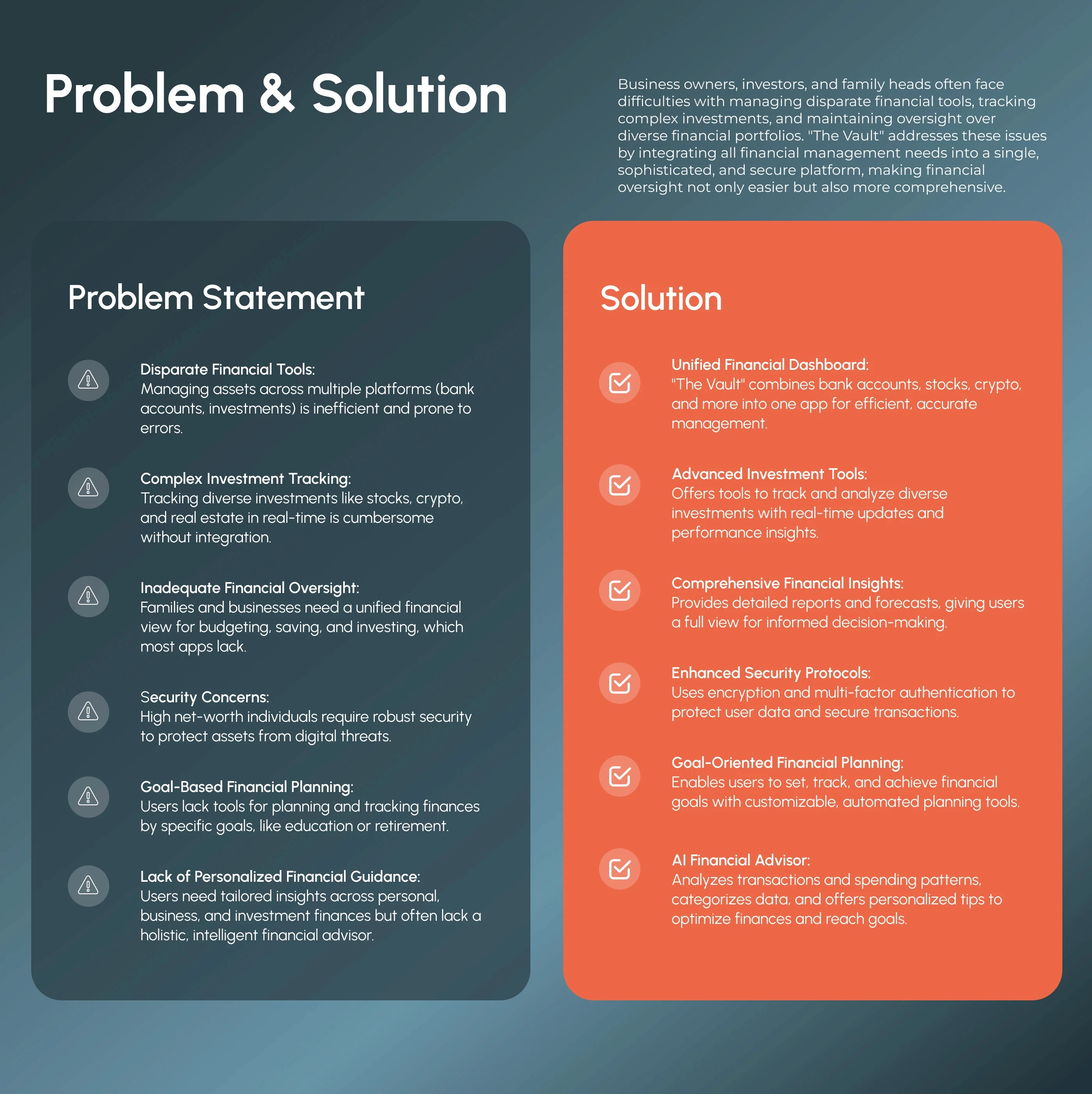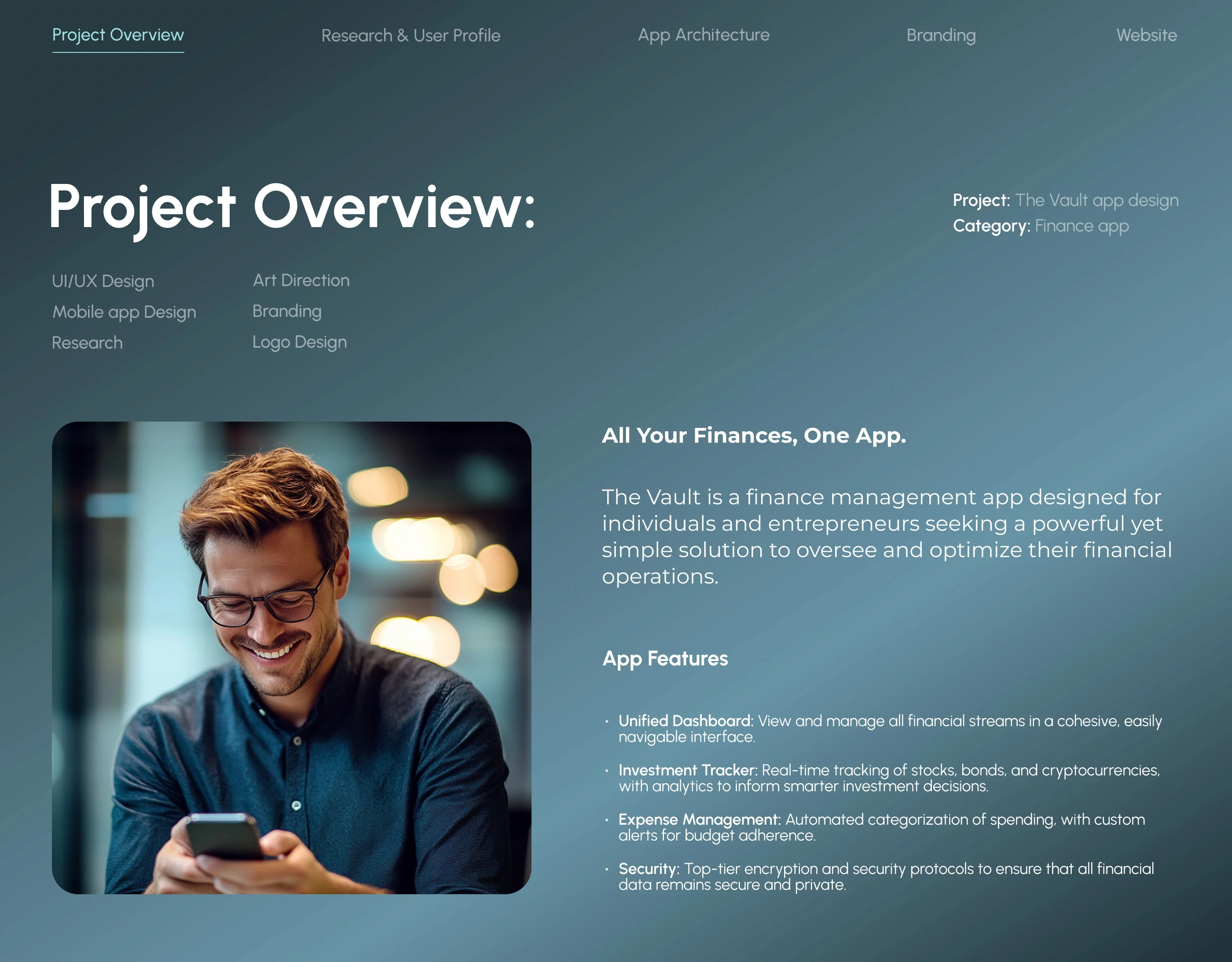 The Vault is a finance management app created for users who want more clarity in their financial life — without complexity. Whether tracking crypto, managing expenses, or reviewing portfolio trends, the app’s mission was to feel like control in your pocket. The founders approached me to refine its entire user experience and design a premium brand system that reflects precision, trust, and modern simplicity. This case study showcases how we brought those goals to life — across UX, UI, brand visuals, and functional storytelling.