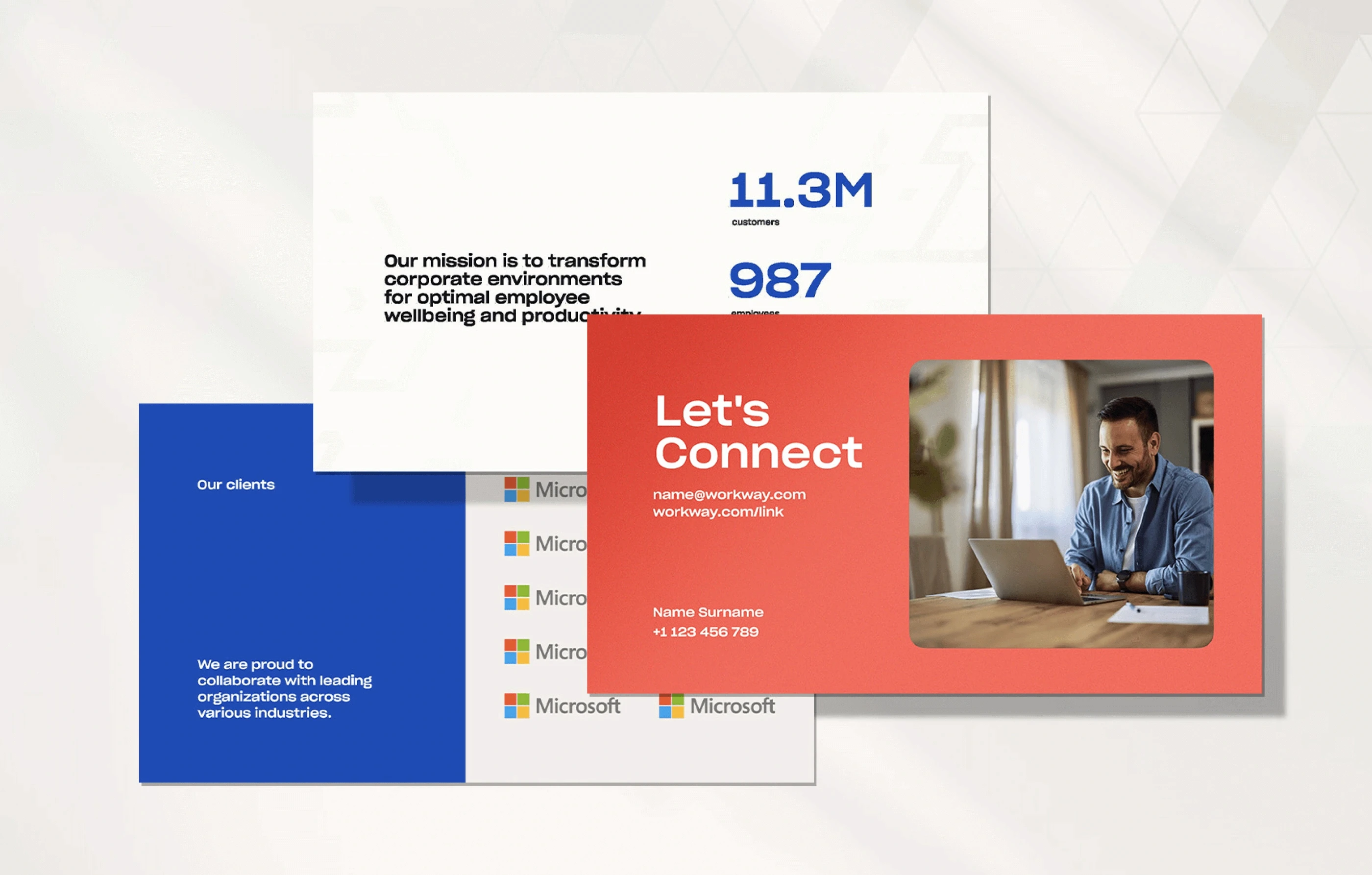 Workway is a B2B brand designed to empower companies with transformational workplace solutions. To support their business development team, I created a complete pitch deck design system - one that’s visually polished, flexible, and easy to adapt across different sales conversations.